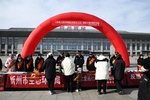 《中華人民共和國反恐怖主義法》頒布實施十周年之際,為深入貫徹總體國家安全觀,引導(dǎo)廣大人民群眾增強(qiáng)反恐意識、強(qiáng)化反恐責(zé)任、踐行反恐義務(wù),筑牢全社會反恐安全防線,12月26日上午,忻州市反恐怖領(lǐng)導(dǎo)小組在忻州西站東廣場開展“全民反恐 共創(chuàng)平安”主題宣傳活動。