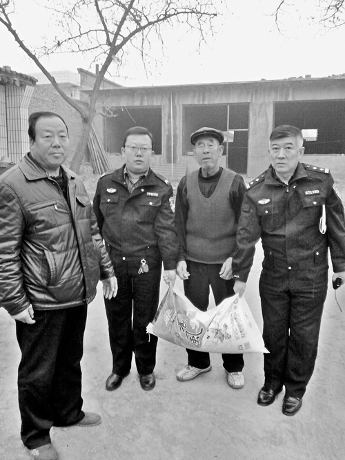 近年來,大隊把扶貧工作當(dāng)作一項政治任務(wù)抓在手上,為了更好地精準(zhǔn)扶貧,按計劃力爭提前完成扶貧攻堅任務(wù)。2015年,李晉生擔(dān)任了原平市南白鄉(xiāng)尚義村的第一書記,負(fù)責(zé)該村的幫扶工作。南白鄉(xiāng)尚義村是原平市的重點貧困村,也是交警大隊幫扶村,全村204人,貧困人口占80%。當(dāng)年12月17日,他自籌2000多元,購買了米、面、糧、油,與大隊的4位民警來到了南白鄉(xiāng)尚義村走訪慰問特困家庭。在全市開展精準(zhǔn)扶貧的攻堅階段,為了讓特困家庭度過溫暖的冬季,交警大隊民警進村入戶共慰問五保戶、特困戶8戶,為他們送去了面粉、大米和食用油。同時,大隊長還看望了90歲高齡的抗戰(zhàn)老兵趙書良,1925年出生的趙書良老人,17歲時就參軍,在抗日戰(zhàn)爭中多次立功授獎。當(dāng)老人雙手接過慰問金后,激動地說:“還是共產(chǎn)黨好,人民警察和人民真是心連心??!”