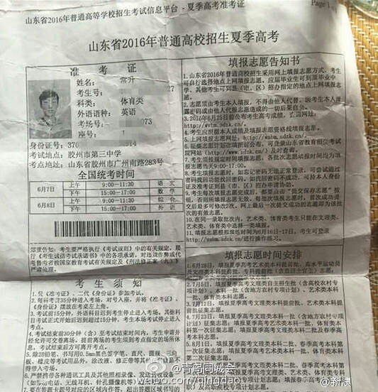 “如果不是他收到了通知書,我永遠也不會知道這個秘密?!背I嬖V記者,他口中的“他”是室友兼摯友郭某。常升和郭某都是體育特長生,兩人今年高考成績相仿,在填報志愿的當天,先后用體育老師遲老師的電腦填報了志愿,均為陜西師范大學的免費師范生。但是錄取通知一下,常升傻了眼,自己并沒有被錄取,但是比自己分數(shù)更低的郭某卻收到了錄取通知書,而且陜西師范大學在山東招收的免費師范生還沒有招滿,種種情況讓常升十分不理解。圖為常升高考相關信息。