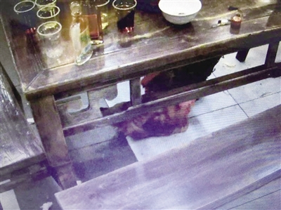 進(jìn)店后,王先生來到廚房,稱了一只5.7斤的雞。按照王先生的要求,雞稱重后被送到后面現(xiàn)宰??吹絾T工將雞丟進(jìn)了一個(gè)大桶內(nèi)開始磨刀,王先生便放心地回到餐桌上與朋友繼續(xù)聊天。
