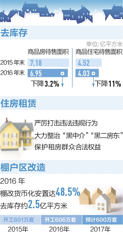 去庫(kù)存是2016年經(jīng)濟(jì)工作的重點(diǎn)任務(wù)之一。去年末,我國(guó)商品房待售面積為6.95億平方米,比2015年末下降了3.2%,去庫(kù)存取得初步成效。“新型城鎮(zhèn)化是去庫(kù)存根本途徑。”陳政高說(shuō),據(jù)調(diào)查,有的城市去年農(nóng)民工和農(nóng)民買房占整個(gè)買房量的50%,有的縣城達(dá)到70%,“今年,要繼續(xù)抓好三四線城市去庫(kù)存。”