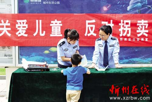 本報訊 近日,為進一步提高人民群眾特別是廣大少年兒童的防拐意識和防拐能力,忻府區(qū)公安局刑偵大隊民警在體育廣場開展了以“關(guān)愛兒童、反對拐賣”為主題的打拐宣傳活動。