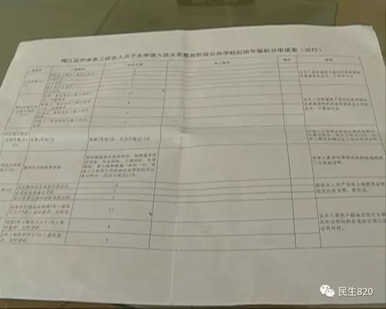因為自己的戶籍不在梅江區(qū),所以必須按照算積分的方式,才能更好地選擇學校。可是,當他看到《梅江區(qū)外來務工就業(yè)人員子女申請入讀義務教育階段公辦學校起始年級積分申請表》(試行)的最后一條規(guī)則寫著:“要由本人提供派出所的無犯罪記錄”時,劉先生表示,這如果有污點,提供之后不是對小孩很不利?