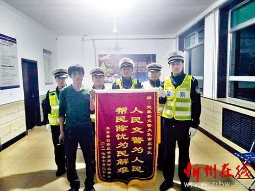 本報(bào)訊10月20日,五臺(tái)縣白家莊鎮(zhèn)寨里村村民馬某,給定襄縣交警大隊(duì)南莊中隊(duì)贈(zèng)送了一面錦旗,上寫:“人民交警為人民,幫民除憂為民解難”,對(duì)南莊中隊(duì)民警快速出警,及時(shí)救助因失控而掉入深溝的貨車駕駛?cè)嗣撾x危險(xiǎn)表示感謝。