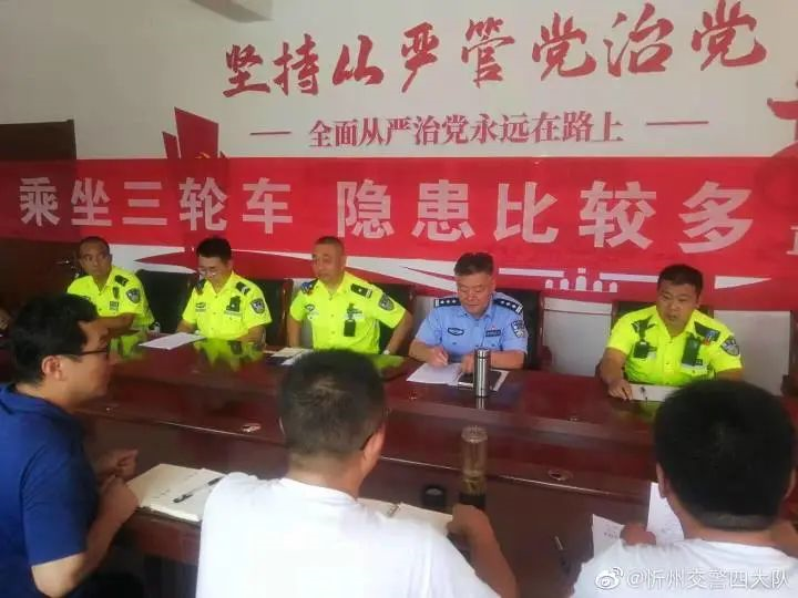7月20日上午,忻州市公安局交警支隊(duì)副支隊(duì)長張全勇、直屬四大隊(duì)負(fù)責(zé)人楊志華等一行前往忻府區(qū)三交鎮(zhèn),與當(dāng)?shù)攸h委、政府領(lǐng)導(dǎo)就開展農(nóng)村勸導(dǎo)站和整治機(jī)動(dòng)三輪車違法載人工作召開專題會議,聯(lián)合部署,強(qiáng)力推進(jìn)專項(xiàng)整治工作。