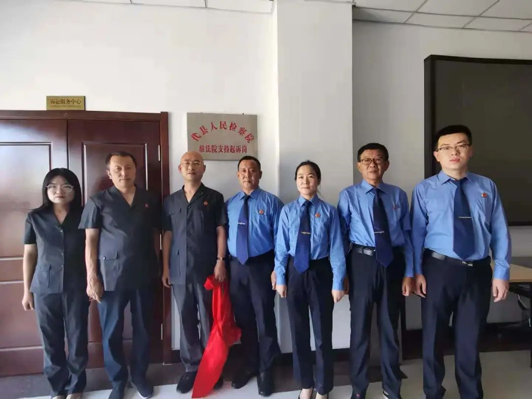 為進一步推進支持起訴崗工作,充分發(fā)揮檢察機關(guān)參與化解社會矛盾和強化法律職能,深化“我為群眾辦實事”活動,切實維護落實群眾合法利益,近日,代縣檢察院和代縣法院就檢察機關(guān)駐法院“支持起訴崗”的設(shè)立舉行揭牌儀式。我院黨組副書記、副檢察長劉衛(wèi)平,代縣法院黨組副書記、副院長趙建新,共同為“代縣人民檢察院支持起訴崗”進行揭牌。