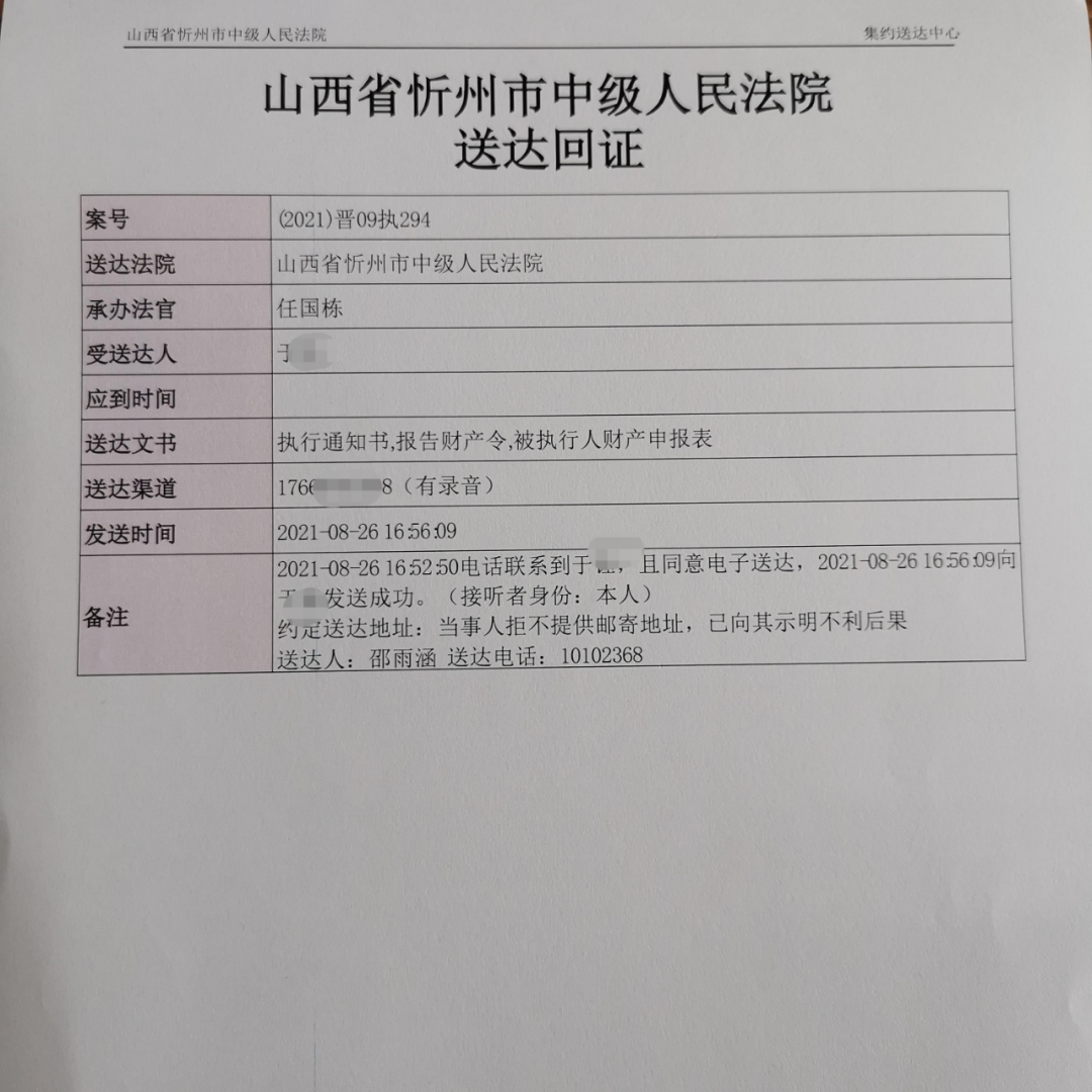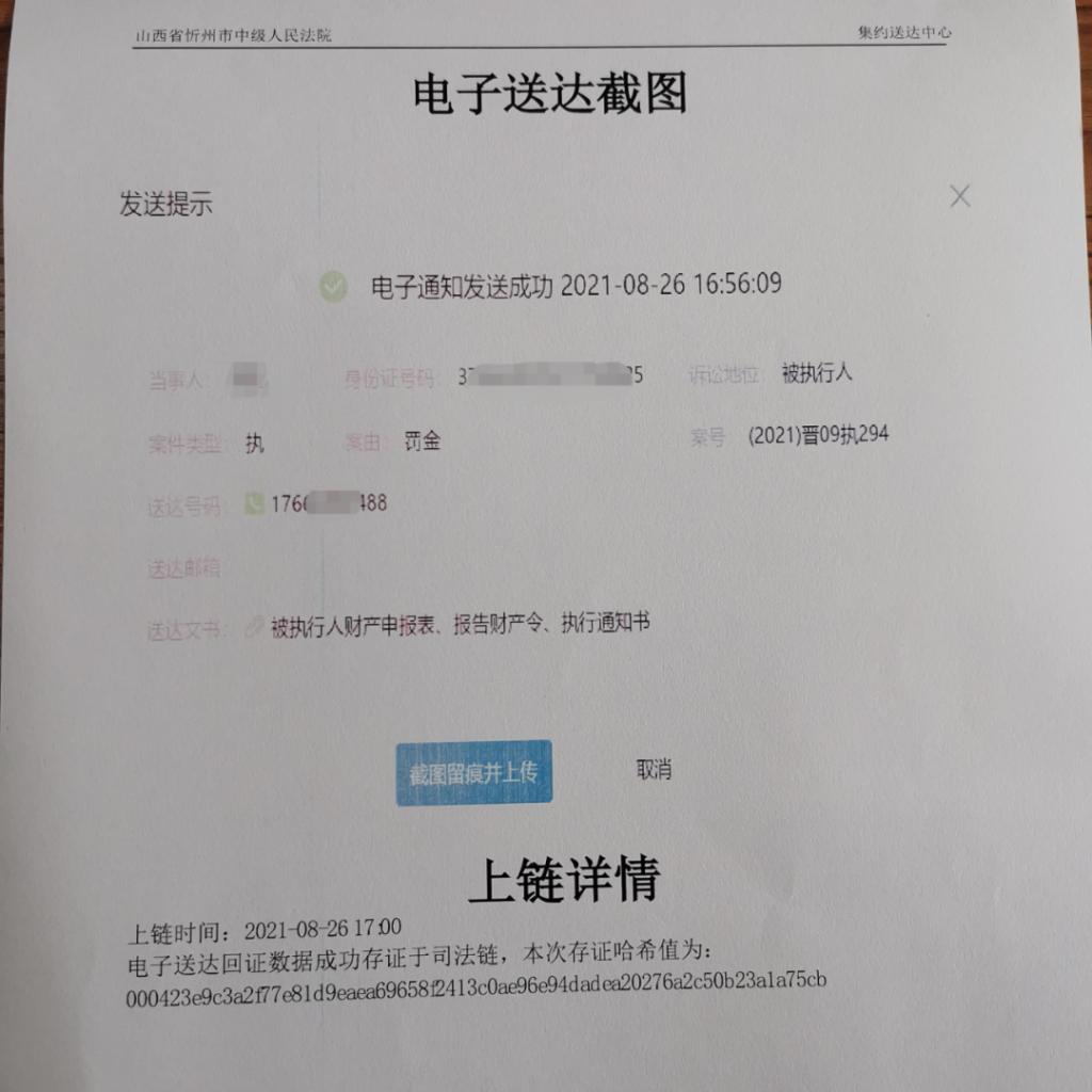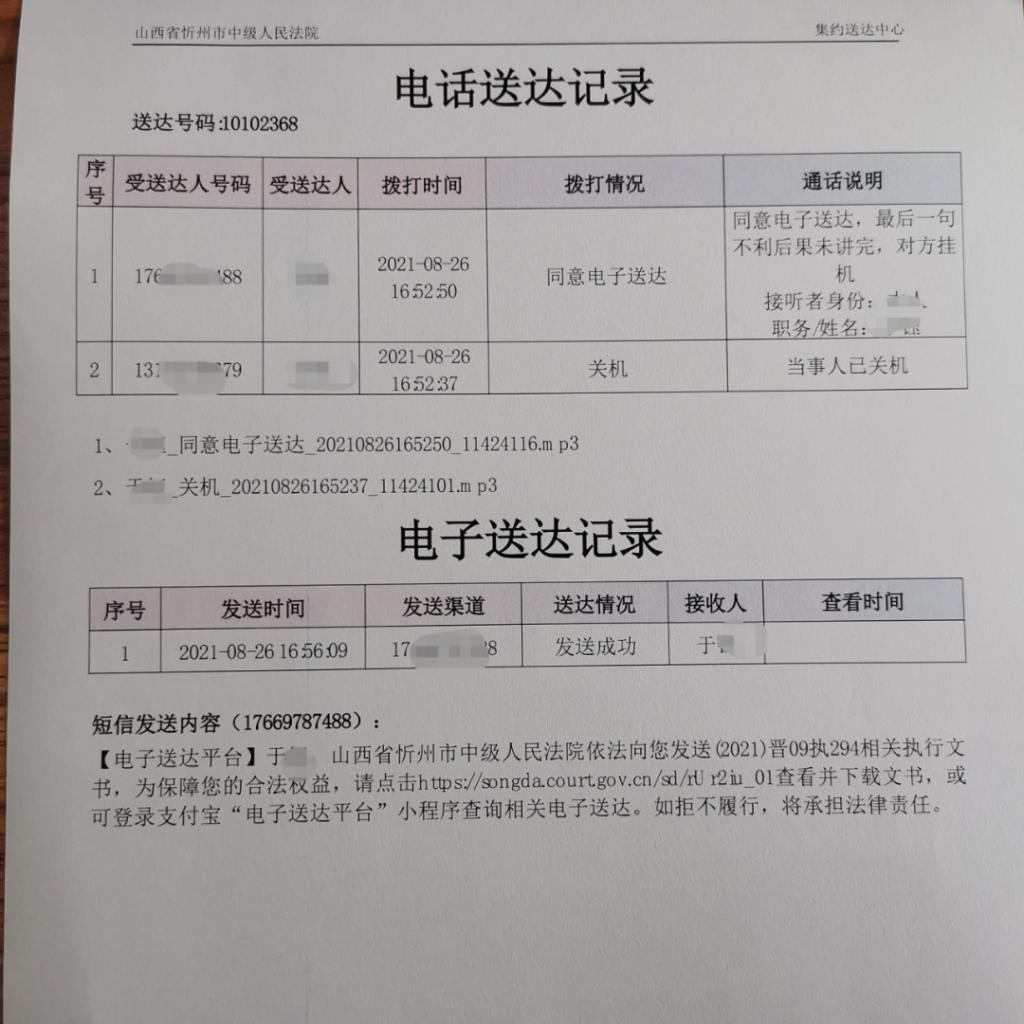 忻州中院“統(tǒng)一電子送達(dá)平臺”