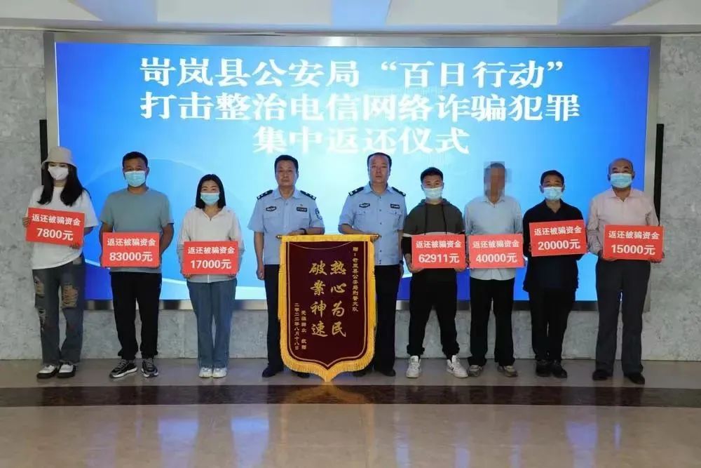 8月20日,靜樂縣公安局組織開展“深化‘百日行動(dòng)’暨電詐案件涉案資金返還儀式”,將近期依法追繳的涉案資金25萬余元集中返還給了8名受害群眾。