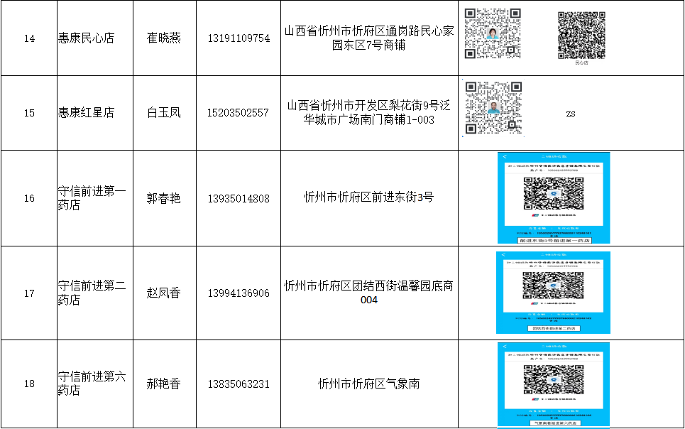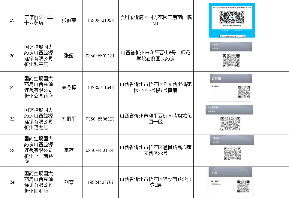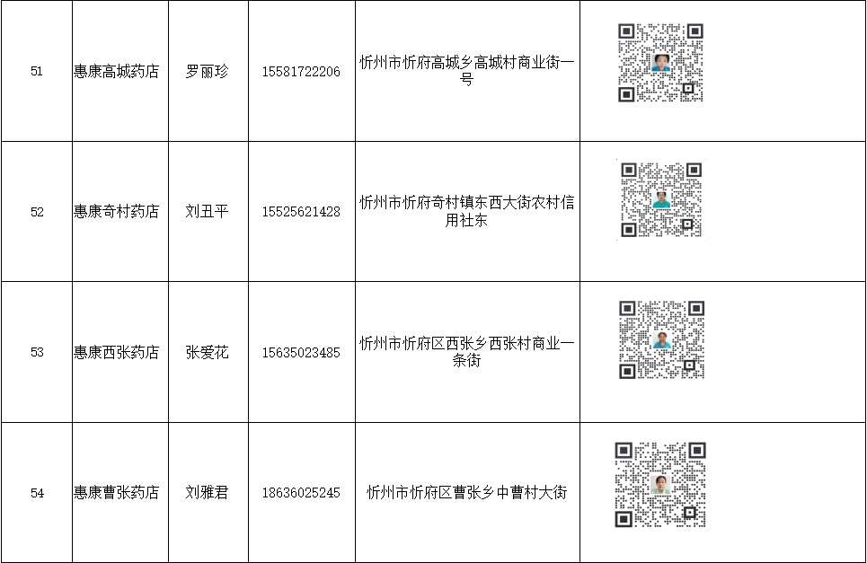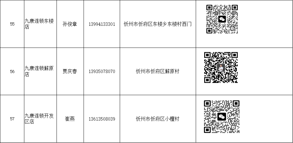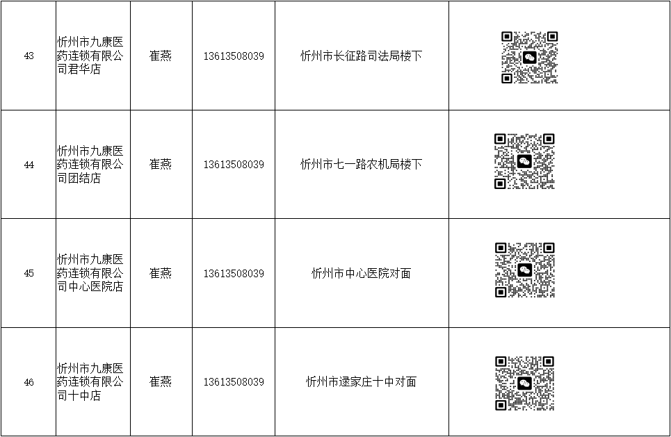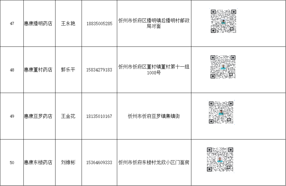 忻州市忻府區(qū)保供藥店明細(xì)(57家)