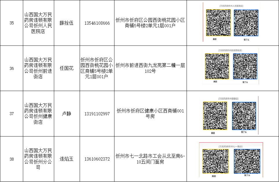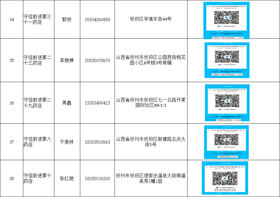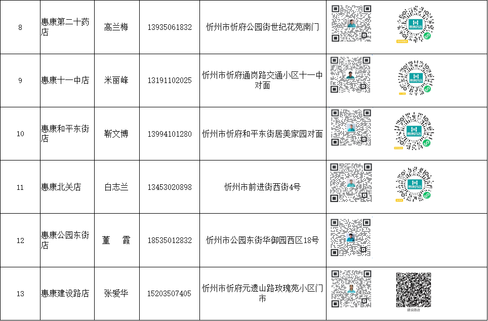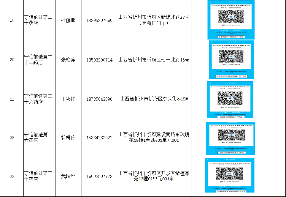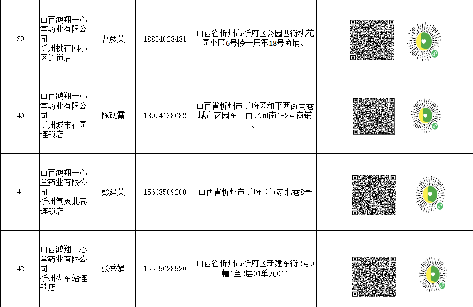 忻州市忻府區(qū)保供藥店明細(xì)(57家)