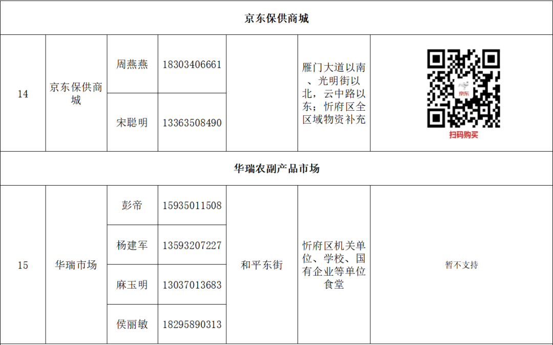 忻府區(qū)保供超市聯(lián)系方式和供應(yīng)區(qū)域表