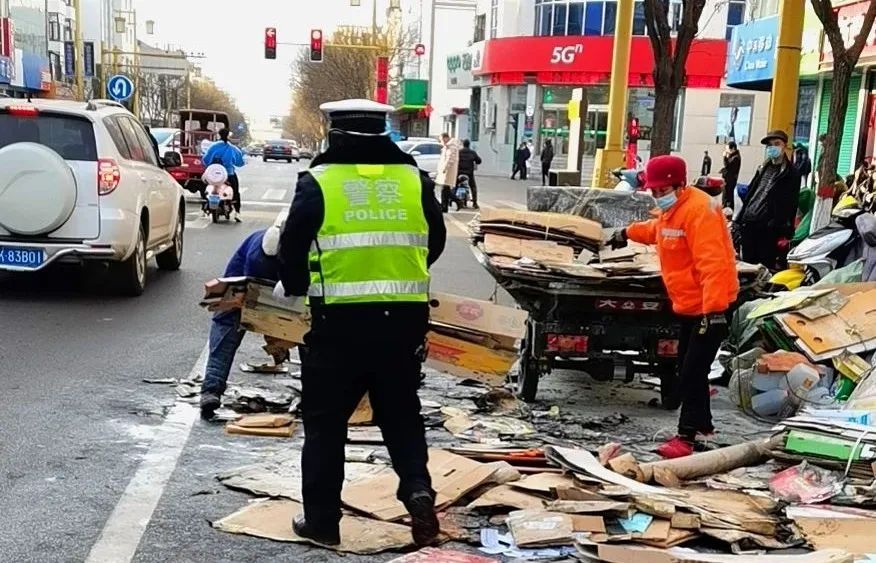 由于撲救及時,三輪車上只有小部分紙片及雜物被燒毀,車輛受損不大。執(zhí)勤交警再三確認電動三輪車火險徹底消除后,又重新投入到執(zhí)勤工作當中去。