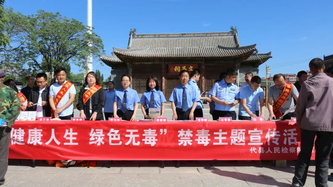 在“全民禁毒宣傳月”暨虎門銷煙184周年來臨之際,6月2日,代縣檢察院參加由代縣禁毒辦聯(lián)合縣公安局、縣法院和縣司法局等十余個單位在代縣文昌祠廣場組織的大型禁毒主題宣傳活動。