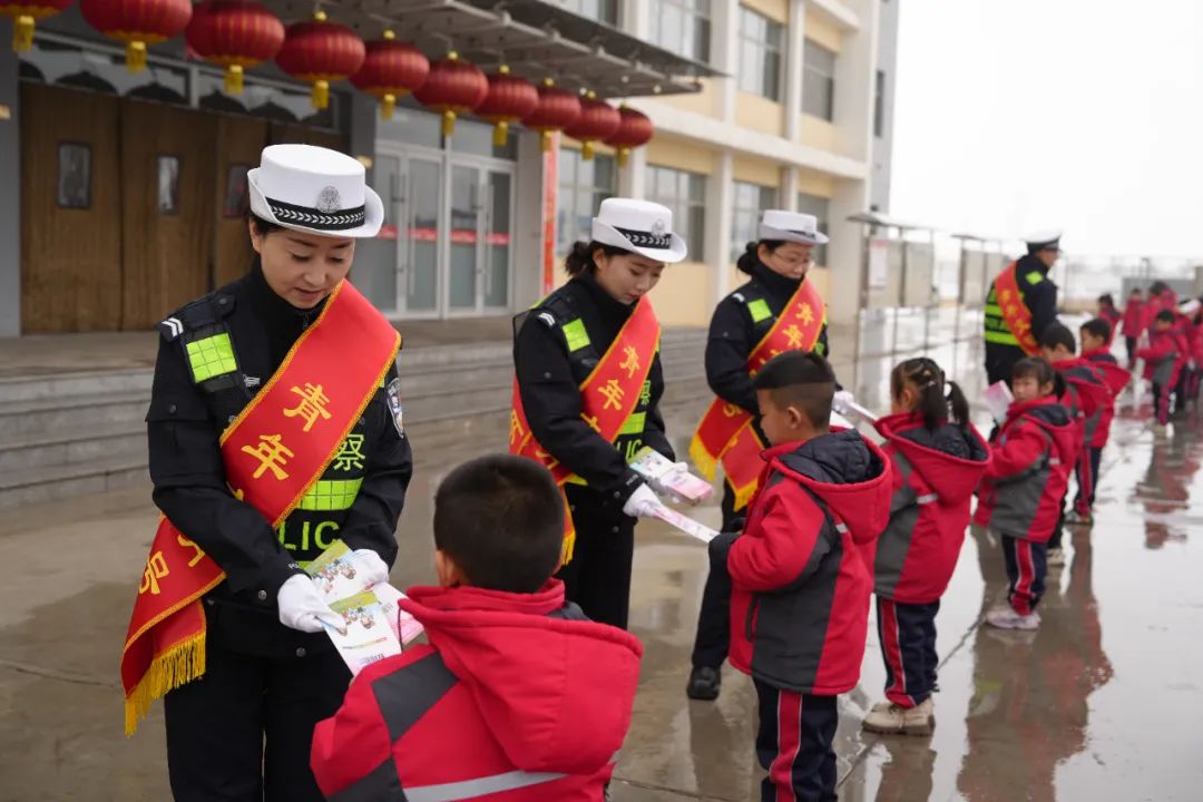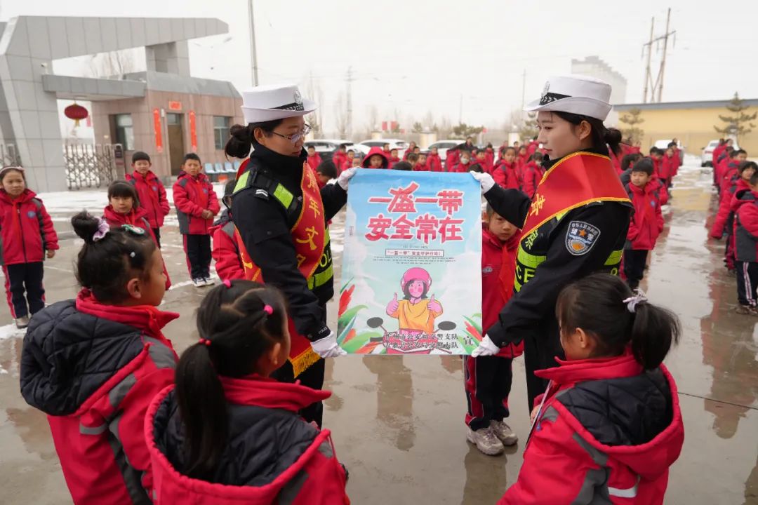 活動中民輔警通過演示交通手勢指揮操,展示“一盔一帶”交通安全海報,發(fā)放交通安全宣傳彩頁等形式,使學(xué)生們理解并熟記基本的交通安全知識,增強(qiáng)自身“知危險、會避險”的能力,做到遵章守法,文明出行。