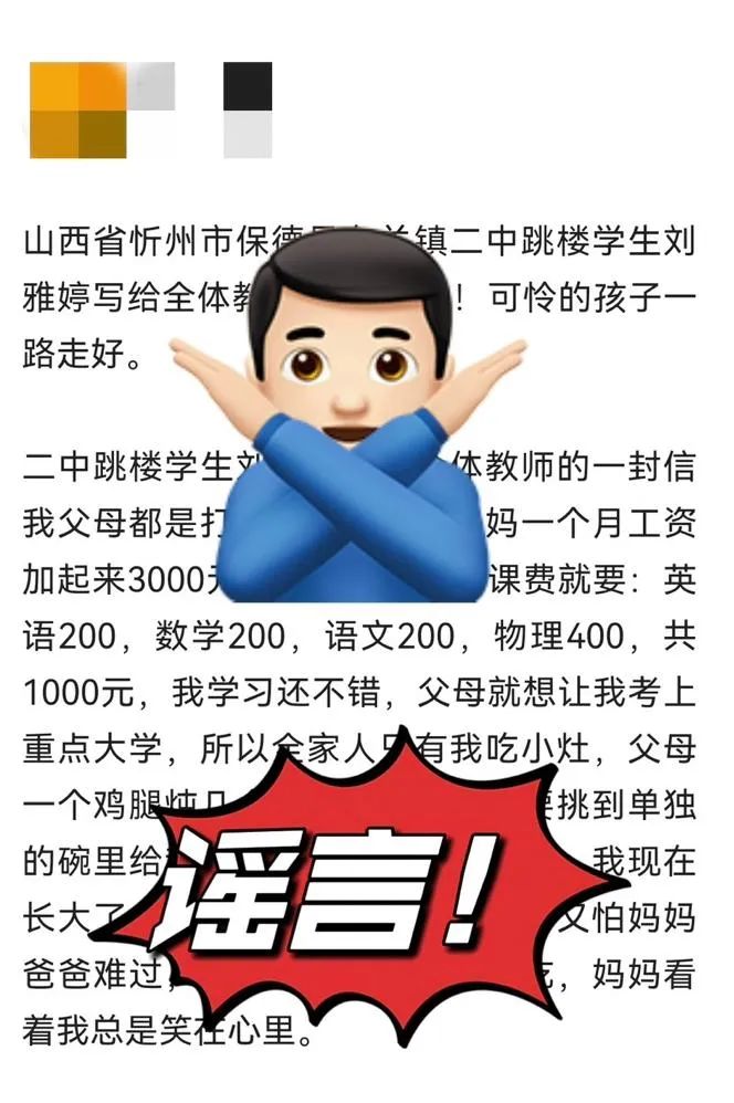 2024年3月18日,忻州網(wǎng)警在工作中發(fā)現(xiàn),網(wǎng)民鄔某在某平臺發(fā)文稱“山西省忻州市保德縣東關(guān)鎮(zhèn)二中跳樓學(xué)生小劉(化名)寫給全體教師的一封信”。
