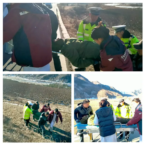 1月17日9時15分,寧武縣公安局交警大隊東寨中隊接到縣局110緊急指令,東黃線1KM+500處(窯子彎村附近)一輛農(nóng)用三輪車不慎墜入溝中,有人員受傷。接到指令后,中隊民輔警火速出動,趕赴事發(fā)地點(diǎn)實(shí)施救援處置。