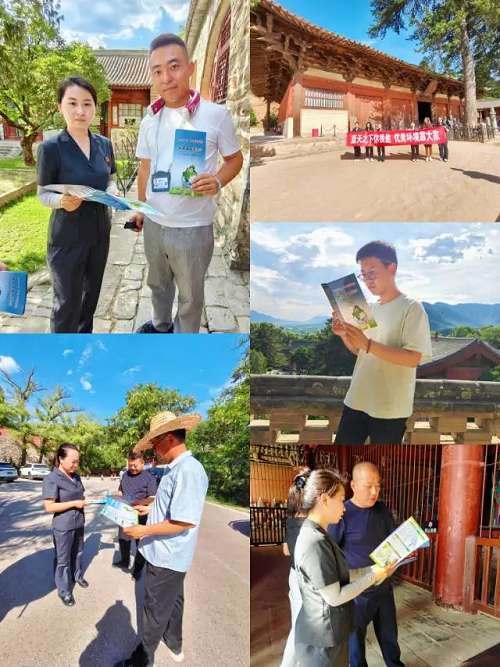 活動現(xiàn)場,法官干警向佛光寺工作人員及在場導游宣講了生態(tài)環(huán)境保護、文物古建保護的重要意義,倡導大家自覺遵守并積極推廣相關政策和法律法規(guī),耐心解答了現(xiàn)場游客提出的各類生態(tài)環(huán)境保護問題。同時,向游客普及文物保護相關法律法規(guī),鼓勵大家積極投身生態(tài)環(huán)境保護與文物保護工作,共同守護綠水青山,守護好文物古建。