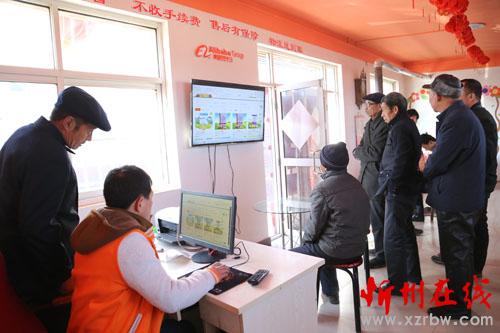 靜樂縣鵝城鎮(zhèn)風溝村農村淘寶服務站,村民劉風林正在工作人員的幫助下在農村淘寶網上選購農資?!叭ツ旯赓I化肥就花了1300多塊,剛剛看了網上的價格,能比去年省下100多塊錢哩。”如今,靜樂縣農民依靠農村淘寶網選購農資備春耕已不是新鮮事了。(閆曉梅 攝)