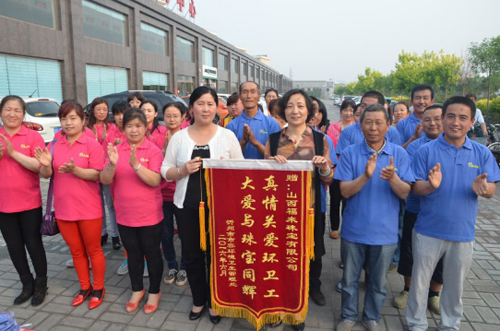 六月七日,忻州知名企業(yè)“山西福來珠寶有限公司”,向忻州市環(huán)衛(wèi)處全體環(huán)衛(wèi)工人捐贈1300件價(jià)值近五萬元的T裇衫,供環(huán)衛(wèi)工人夏季作業(yè)避暑,同時(shí)呼吁社會各界愛護(hù)環(huán)境衛(wèi)生,關(guān)愛環(huán)衛(wèi)工人。市環(huán)衛(wèi)處處長石建新、副處長張林霞一同出席捐贈儀式,并代表市環(huán)衛(wèi)處向山西福來珠寶有限公司回贈錦旗,以示感謝。