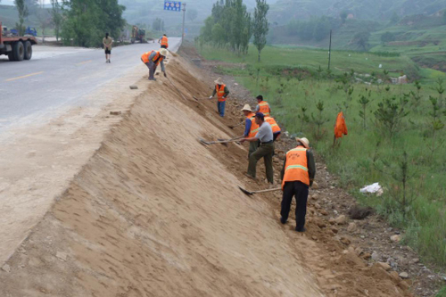 進(jìn)入汛期以來,靜樂公路管理段將路基邊坡加固作為安全隱患治理,保障公路安全暢通的重要養(yǎng)護(hù)工作來抓,堅持不懈的做好強(qiáng)基固路工作。確保了預(yù)防性、預(yù)警性、安全性養(yǎng)護(hù)三到位,圖為養(yǎng)路工正在培土加固邊坡。(李永珍 攝)