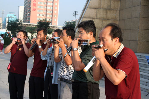 7月30日,原平市口琴協(xié)會(huì)演奏人員正在廣場上給觀眾演奏精彩的口琴技藝,深受群眾歡迎。該市注重文化建設(shè),活躍群眾文化生活多姿多彩。(趙春曉 攝)