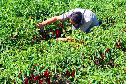 9月1日,原平市南灘村農民武金雙正在管理種植的北京紅辣椒。該村調整產業(yè)結構,由原來種植玉米地,如今引進種植了新品種北京紅辣椒長勢喜人,又是一個豐產年,促進了農業(yè)增產,農民增收,他們如今的生活就像紅辣椒一樣過的紅紅火火。(趙春曉 攝)