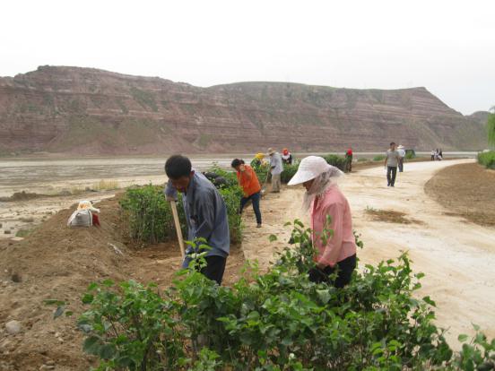 9月4日,河曲縣黃河岸邊20多名工人正在栽植丁香綠化帶。入秋以來,該縣對初具規(guī)模的濱河濕地公園優(yōu)化提質和適當擴展,一方面增修了公園曲徑、小亭,一方面對公園邊緣進行補綠,在護河堤栽植爬地柏、三七景天,空擋地帶栽植丁香,進一步增加綠化面積,提升公園檔次和品位。據悉,該公園面積達450畝。(賈金理 攝)