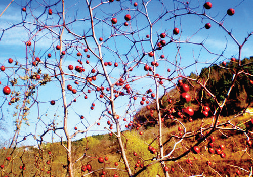 深秋,回到五臺(tái)松巖口村,站在姥爺姥姥居住過(guò)的院子里,看到村后山梁上的酸棗樹(shù),已經(jīng)成了黑幽幽一大叢。酸棗樹(shù)是家鄉(xiāng)野生植物里生命旺盛的一種,地壟邊,山崖頂,石頭縫,到處都有,它不需要種植,不需要施肥澆水,只要有一點(diǎn)土就能生長(zhǎng),不管是遇上天旱的年景,還是雨澇的光景,都生長(zhǎng)得郁郁蔥蔥。酸棗樹(shù)生命力特別強(qiáng),砍伐過(guò)的樹(shù)茬很快就又長(zhǎng)高了,砍過(guò)后第二年比第一年長(zhǎng)得還要旺。