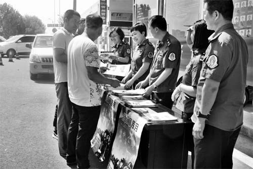活動期間,原太路政大隊(duì)通過在轄區(qū)收費(fèi)站廣場、治超點(diǎn)、服務(wù)區(qū),沿線社區(qū)、村莊等場所懸掛宣傳條幅、設(shè)置咨詢服務(wù)臺、發(fā)放宣傳資料向廣大人民群眾積極宣傳法律法規(guī)知識,通過發(fā)送微信、微博等方式廣泛深入普及公路、橋梁安全保護(hù)法律知識,掀起了路政法制宣傳熱潮,得到了社會公眾對路政管理的理解和支持。