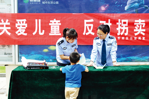本報(bào)訊 近日,為進(jìn)一步提高人民群眾特別是廣大少年兒童的防拐意識和防拐能力,忻府區(qū)公安局刑偵大隊(duì)民警在體育廣場開展了以“關(guān)愛兒童、反對拐賣”為主題的打拐宣傳活動。