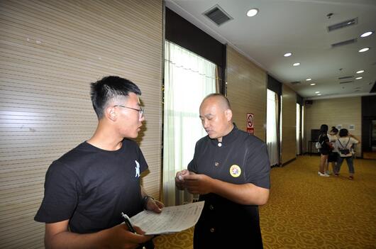 忻州市武術(shù)協(xié)會感謝當(dāng)?shù)仄髽I(yè)一如既往給與支持。圖為當(dāng)?shù)厍嗄昶髽I(yè)家付慧杰與協(xié)會主席張丕峰合影。中國網(wǎng)照片,山西(忻州),2017年8月6日 溫曉軍攝
