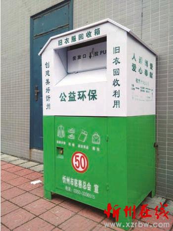 市慈善總會(huì)工作人員表示,下一步市慈善總會(huì)將與志愿者組織聯(lián)合制作更多的舊衣服回收箱,投放覆蓋忻州城區(qū)所有小區(qū),使我市的慈善捐助工作機(jī)制逐步走向常態(tài)化。圖為設(shè)置在惠民小區(qū)的舊衣物回收箱(魯明強(qiáng))