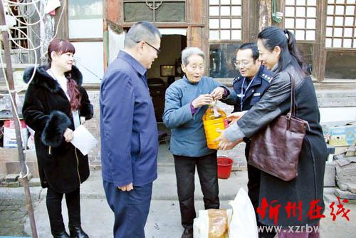本報(bào)訊 11月15日,忻州監(jiān)獄與忻府區(qū)秀容辦西街社區(qū)結(jié)對,開展志愿服務(wù)活動,對社區(qū)困難戶、孤寡老人進(jìn)行了走訪慰問,為他們送上面粉、大米、食用油等慰問品。志愿者們關(guān)切地詢問他們的生活情況、身體狀況,并叮囑老人天氣寒冷要注意防寒保暖、出入安全。志愿者們告訴他們,平時遇到困難時,要及時給社區(qū)居委會打電話,工作人員會竭盡所能解決問題。