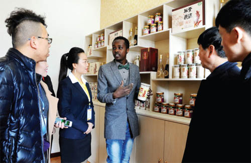 本報(bào)訊12月2日,在太原舉行的特色農(nóng)產(chǎn)品展示會(huì)上,來(lái)自肯尼亞的黑人小伙孔健為靜樂(lè)縣種植的藜麥產(chǎn)品代言。在肯尼亞,孔健自小就是吃藜麥長(zhǎng)大的,展示會(huì)上,山西省農(nóng)科院與山西金壤惠生物料技有限公司合作推出的10余種藜麥深加工產(chǎn)品讓他眼花繚亂。據(jù)悉,目前靜樂(lè)縣全縣藜麥種植總規(guī)模已擴(kuò)大至1萬(wàn)畝,藜麥深加工產(chǎn)品極大助力了當(dāng)?shù)剞r(nóng)戶脫貧致富。(鐘清)