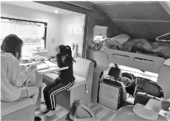 吳女士一家住在永嘉縣,女兒欣欣(化名)在溫州市區(qū)上小學。這學期,吳女士一家花了近50萬元買了一輛房車,就停放在學校對面,這樣女兒出校門就到了“家”。