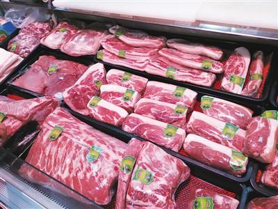 超市冰柜里出售的豬肉。本報(bào)記者 孔德晨攝