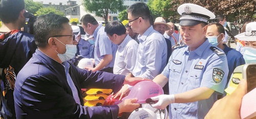 本報(bào)訊 為最大限度減少因交通事故造成的人員傷亡,5月14日,市公安局交警支隊(duì)聯(lián)合市保險(xiǎn)業(yè)協(xié)會(huì)、太平洋保險(xiǎn)忻州分公司和城區(qū)快遞、外賣(mài)企業(yè),舉辦以“一盔一帶”為主題的警企聯(lián)合勸導(dǎo)活動(dòng),在進(jìn)行安全宣傳的同時(shí),為途經(jīng)的騎行市民發(fā)放安全頭盔。對(duì)駕乘摩托車(chē)不佩戴頭盔、駕乘車(chē)輛不按規(guī)定佩戴安全帶的交通違法行為進(jìn)行勸導(dǎo),積極倡導(dǎo)市民在騎電動(dòng)自行車(chē)時(shí)佩戴頭盔。