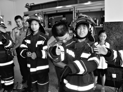 “叔叔,這是干什么用的?” 樂(lè)樂(lè)拿起一個(gè)面罩轉(zhuǎn)了幾圈?!斑@個(gè)叫防毒面具,可以防止毒氣、煙霧進(jìn)入鼻子和嘴巴?!币幻绬T戰(zhàn)士告訴樂(lè)樂(lè),在發(fā)生火災(zāi)時(shí),為了防止毒氣、煙霧吸入口中,小朋友們可以用濕毛巾代替,把濕毛巾對(duì)折捂住嘴巴和鼻子?!懊泶驖窈笞詈蒙晕Q一下,讓毛巾不滴水,這樣防毒的效果最好?!?/p>