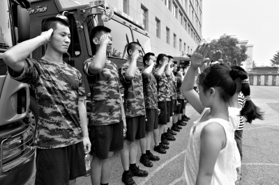 在朝陽(yáng)區(qū)公安消防支隊(duì)左家莊消防中隊(duì),樂(lè)樂(lè)在“北京少年兒童消防嘉年華”活動(dòng)中,第一次撥打了火警電話(huà)。