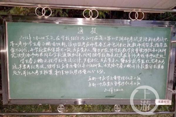 因此事件受罰的還有兩位老師。通報指出,該場監(jiān)考教師李春蘭、承包片區(qū)巡視教師周華軍指導監(jiān)督不到位,與學校要求不一致。為教育本人,警示大家,決定給予兩名教師全校通報批評,“同時按學校相關規(guī)定在年終考核中予以兌現(xiàn)”。