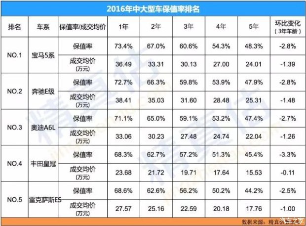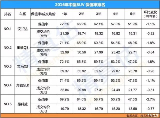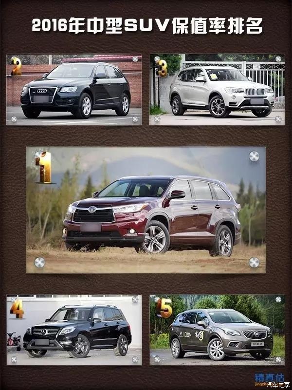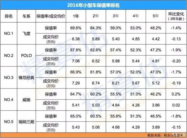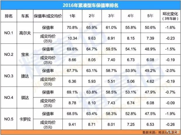 2016年度二手車保值率推薦車型(精真估)