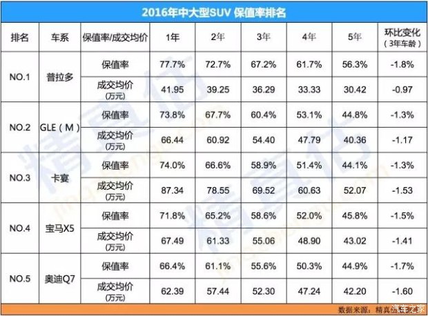 中型SUV以真7座開始作為參考指標(biāo),保值率出現(xiàn)一定的影響,這一車型保值率比較中,2017年將增加大量的有力競爭對手,保值率排名會有明顯的變化,如大眾途觀L、本田冠道、新寶馬X1以及自主品牌的旗艦SUV車型等。