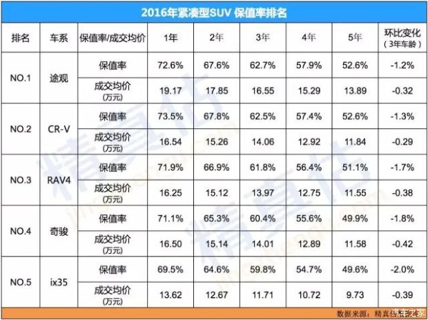 五、緊湊型SUV保值率分析