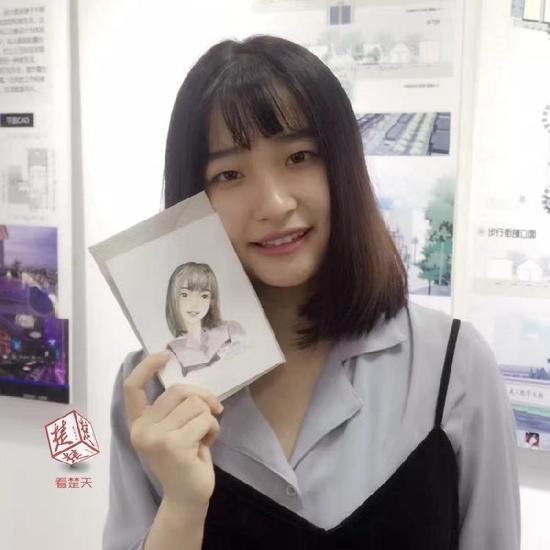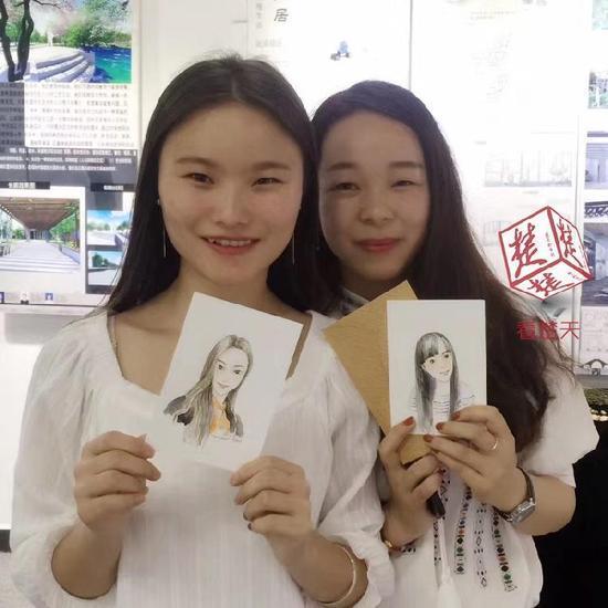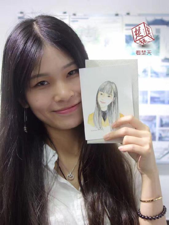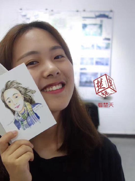 大大的眼睛、長長的頭發(fā),微微歪著腦袋,一個(gè)活潑可愛的女孩形象躍然紙上,該班張馨云同學(xué)直呼:“和我真的太像了!”而這別出心裁的畢業(yè)禮全都出自該班授課教師范晶晶之手。