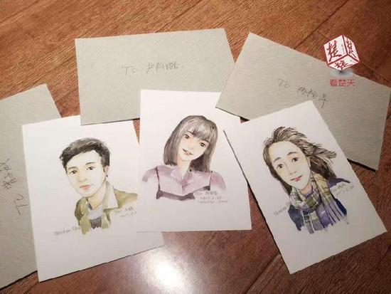 近日,該班學(xué)生順利結(jié)束畢業(yè)答辯,范晶晶給班上每位同學(xué)送出了由自己親手繪制的水彩明信片,明信片正面是她為每個(gè)學(xué)生手繪的人物肖像,反面則是她親手寫上的昵稱和對學(xué)生的祝福。