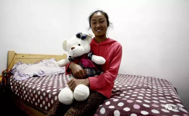 臥室里,有一只穿著裙子的白熊毛絨玩具,這是衣伍木的老師不久前剛送給她,標簽都還未摘下。這是衣伍木長這么大收到的第一個毛絨玩具,她很是喜歡。