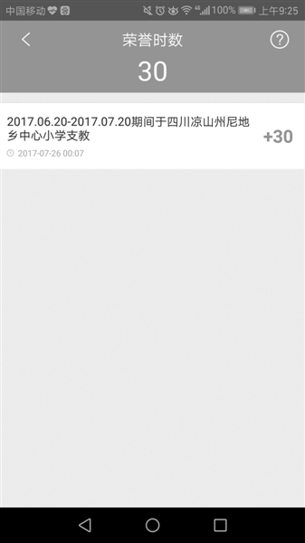 填寫個人信息后的第二天,“志愿匯”APP上增加了30個小時的志愿時長,志愿服務信息與購買時填寫的信息一致