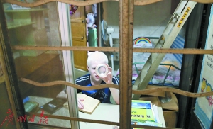孫開俊的家位于海珠區(qū)昌崗中路一個(gè)宿舍區(qū)的首層。走進(jìn)他家客廳,最顯眼的就是開俊從小到大的照片和獎(jiǎng)狀,有學(xué)校的獎(jiǎng)狀,也有參加圍棋比賽、殘障人士跑步比賽等的獎(jiǎng)狀,一面墻的正中間還掛著一幅歌德的名言——“目標(biāo)越接近,困難越增加”?!斑@是開俊自己選的?!睂O爸爸說。走進(jìn)房間,原本堆滿雜物的書桌已經(jīng)被改造成明亮寬敞的專屬學(xué)習(xí)的空間,開俊正用助視器專注讀書。
