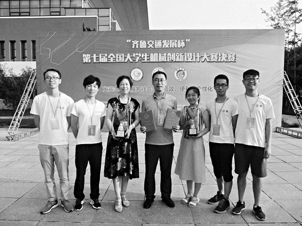 在參加2016年“齊魯交通發(fā)展杯”第七屆全國大學生機械創(chuàng)新設計大賽之前,“有求幣應”設計小組先帶著它參加了省內高校大學生機械創(chuàng)新設計選拔賽。作為這一賽事的傳統(tǒng)比賽項目,硬幣分包裝置設計就像是對學生們要求的一個規(guī)定動作,大家都可以設計,最特殊的最容易跳出?!坝星髱艖碧厥庠谒陌b模塊,因此從上百件同類作品中脫穎而出。而在參加全國大賽時,“有求幣應”同樣獲得了來自清華大學、北京大學、中國科技大學等院校評委的好評。在大賽現(xiàn)場,一位來自清華大學的教授十分感興趣地針對“有求幣應”提出各種問題。盡管硬幣分包裝置已是一個傳統(tǒng)比賽項目,在場教授還是覺得“有求幣應”的設計更為新穎。最終,5人設計的“有求幣應”硬幣分包機獲得了“齊魯交通發(fā)展杯”第七屆全國大學生機械創(chuàng)新設計大賽一等獎,并獲得國家專利,獲取專利的名稱為“一種硬幣分類整理裝置”。