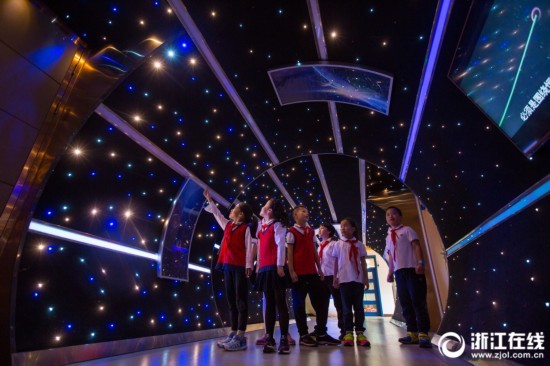 10月9日,杭州長江實驗小學(xué),教學(xué)樓間的一條“星際隧道”群星璀璨,吸引了不少好奇的學(xué)生。